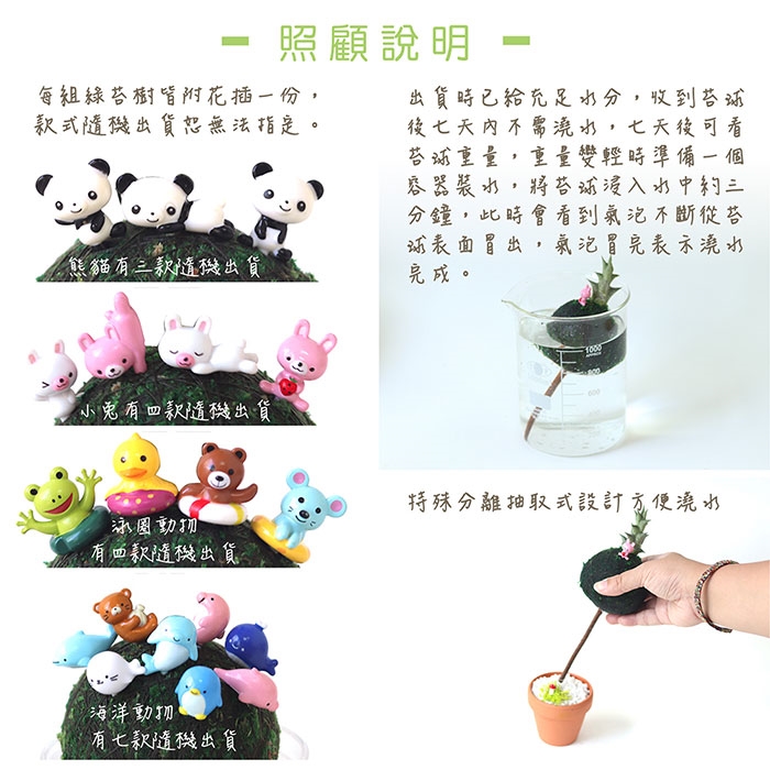 外觀逗趣 好養易照顧的多肉植物 以簡單幾何造型 純手工製作的綠苔包覆種植 搭配不同款式的動物裝飾 放在自己的桌上作為擺設 螢幕盯久了 看看可愛的綠色小盆栽 瞬間減輕壓力