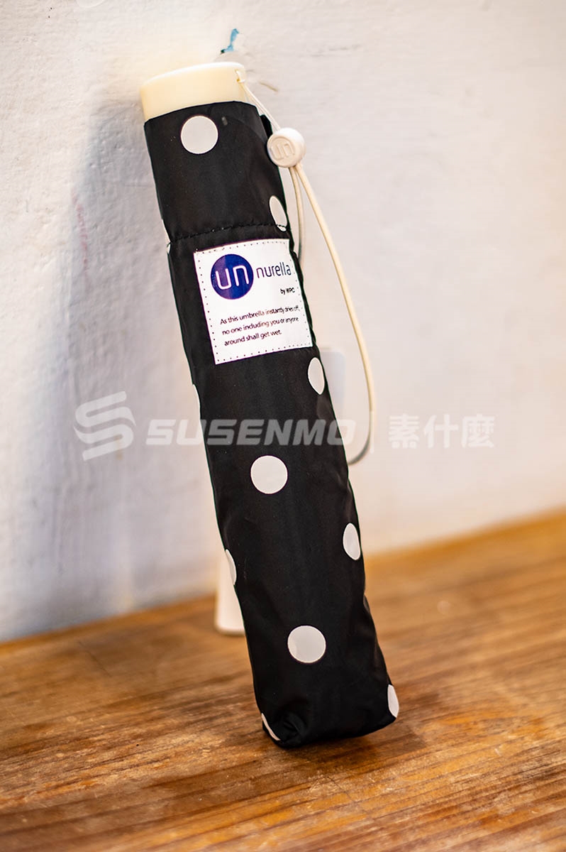 日本“Unnurella”,品牌名稱中的 “Nure”在日文中是「濕」的意思。將Nure + umbrella並在前面加上UN,便成為「不濕雨傘」的意思。Unnurella的理念便是製造一隻不會濕的雨傘,就算下雨撐傘後,也可以藉由甩動而馬上讓雨傘變乾。 在下雨天的日子,上下班的公車上或捷運裡,進出家內,前往拜訪重要客戶時,拿著一把濕濕的傘會比想像中還讓人困擾,因此開發出超撥水功能的傘,設計簡單,只需要甩動一下便可將傘上雨水撥掉、變乾,馬上收好不會弄得到處溼答答。是個貼心設計x日常實用x高功能性的品牌。