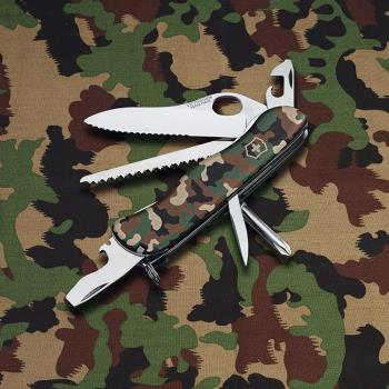瑞士百年經典品牌 12種救身必備功能 主刀附孔可單手開啟 迷彩防滑刀殼設計 VICTORINOX瑞士維氏12用單手開防滑刀殼瑞士刀 迷彩品牌 VICTORINOX瑞士維氏型號 VTN 08463 M